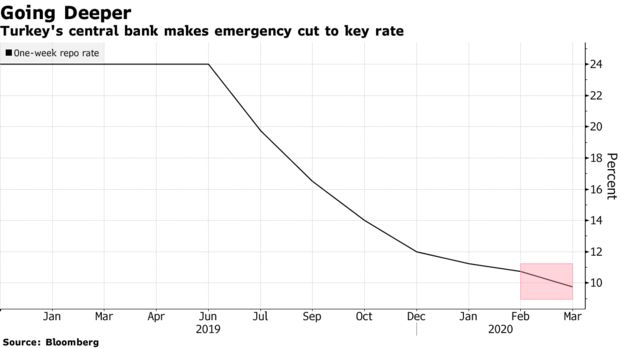 Ngân hàng Trung ương Thổ Nhĩ Kỳ hôm thứ Ba vừa hạ lãi suất cơ bản bớt 1% xuống mức một con số và công bố hàng loạt biện pháp nhằm gia tăng thanh khoản giữa đại dịch virus corona. Cùng ngày, NHTW Ba Lan cũng có động thái tương tự, nối gót hành động của NHTW Ai Cập trong ngày thứ Hai.