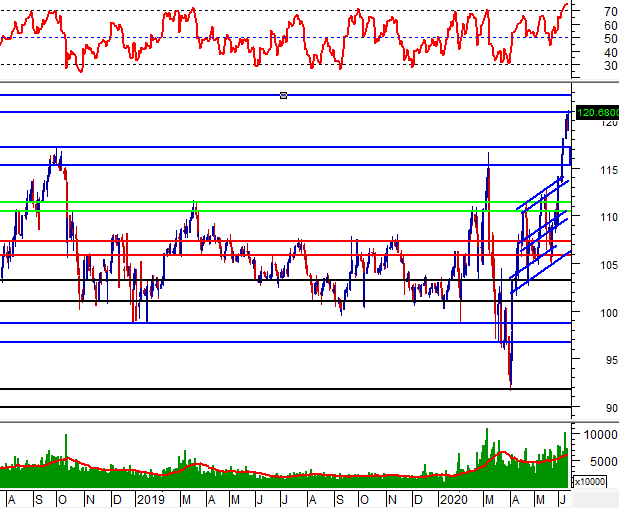Hiện tại, nhiều khả năng chỉ số sẽ tiếp tục tiến đến test vùng 120.8-122.6 điểm trong phiên tới.