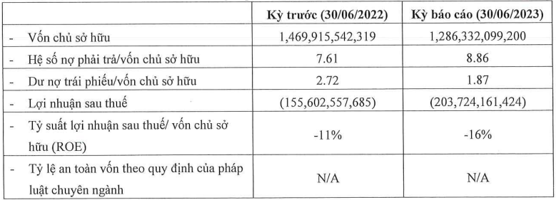 Không những liên tiếp báo lỗ, hệ số nợ phải trả/vốn chủ sở hữu của Thành phố Aqua tăng từ 7.61 lần vào 30/06/2022 lên 8.86 lần vào 30/06/2023. Tuy nhiên, dư nợ trái phiếu/vốn chủ sở hữu lại giảm từ 2.72 lần xuống còn 1.87 lần.