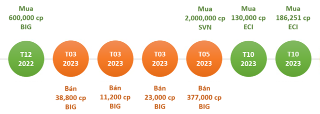 Vào cùng ngày 31/05/2023, Mya Capital bán 377,000 cp BIG của CTCP Big Invest Group, giảm tỷ lệ sở hữu từ 10% về chỉ còn 2.46%, không còn là cổ đông lớn tại BIG. Đây là khoản đầu tư được Mya Capital thực hiện từ cuối năm 2022 khi mua vào 600,000 cp. Tuy nhiên, xét theo diễn biến giá cp BIG thì khoản đầu tư này không mang lại lợi nhuận cho Mya Capital.