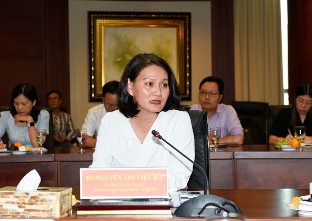 Quyền Chủ tịch HOSE Nguyễn Thị Việt Hà báo cáo Lãnh đạo Bộ hoạt động của HOSE