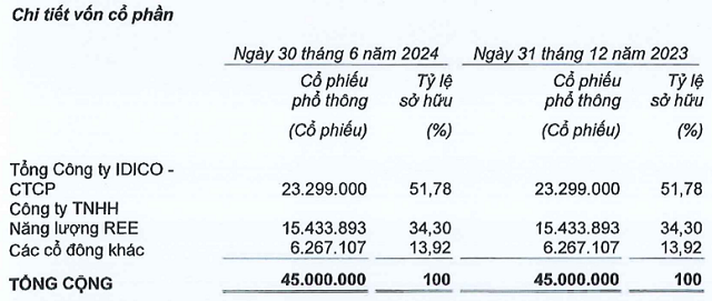 Tính tới ngày 30/06, Tổng Công ty IDICO - CTCP (HNX: IDC) đang là công ty mẹ của ISH khi sở hữu gần 23.3 triệu cp, chiếm tỷ lệ 51.78% và cổ đông lớn Công ty TNHH Năng lượng REE sở hữu 34.3%, ước tính cả 2 sẽ nhận được lần lượt hơn 23 tỷ đồng và hơn 15 tỷ đồng từ cổ tức ISH.