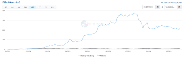 Nhóm cổ phiếu ngành viễn thông với sắc xanh tích cực ngay từ đầu phiên. Trong đó, VGI tăng 5.37%, CTR tăng 4.74%, FOC tăng 1.69% và ELC tăng 1.47%... Ngoài ra, đây là nhóm ngành hiện có hiệu suất ngành vượt trội so với chỉ số VN-Index tính từ đầu năm đến nay. Tuy đã có sự sụt giảm khá mạnh từ tháng 07/2024 đến nay nhưng đây vẫn là nhóm có hiệu suất đứng đầu trong các ngành trên thị trường.