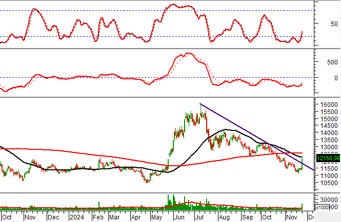 Trong phiên sáng 25/11/2024, HDG tăng giá đồng thời xuất hiện mẫu hình nến Rising Window cùng với khối lượng giao dịch vượt mức trung bình 20 phiên cho thấy tâm lý nhà đầu tư đang khá tích cực.