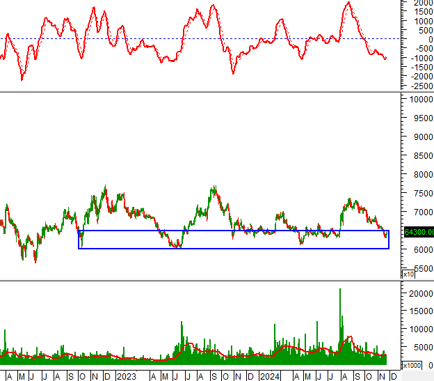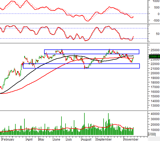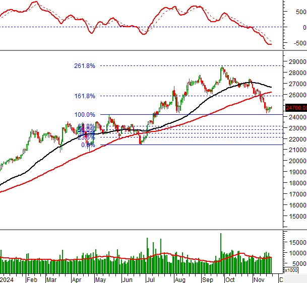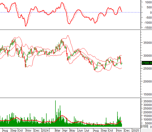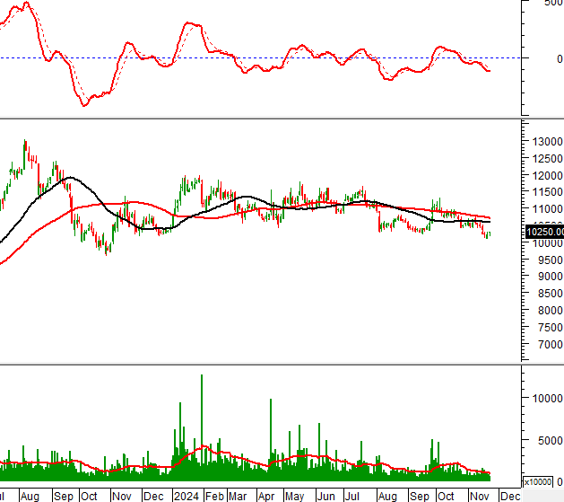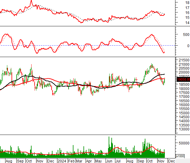 Khối lượng giao dịch nằm dưới mức trung bình 20 ngày trong phiên giao dịch 22/11/2024 cho thấy nhà đầu tư khá thận trọng.
