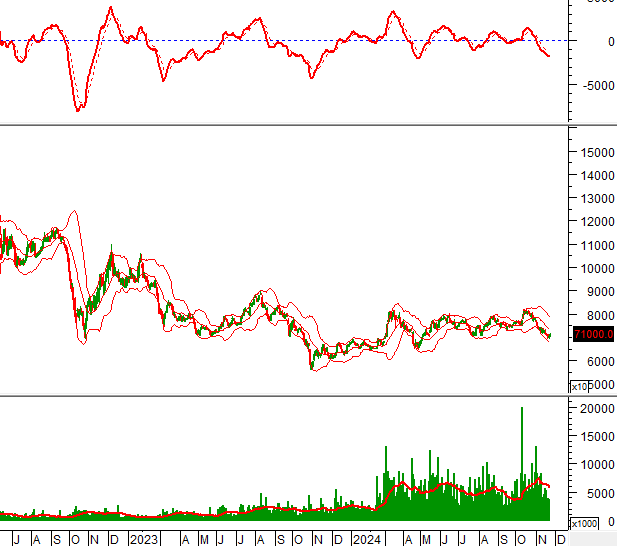 Mặt khác, giá đã rơi xuống dưới Middle của Bollinger Bands nên tình hình khá bi quan.