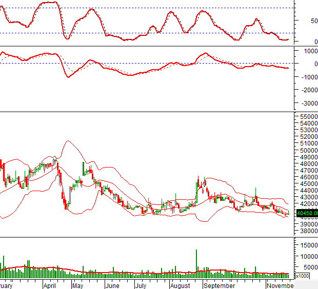 Giá đã rơi xuống dưới đường Middle của Bollinger Bands nên tình hình không quá lạc quan.