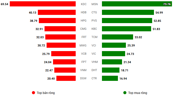 Giá trị giao dịch ròng theo mã cổ phiếu. Đvt: Tỷ đồng