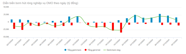 Diễn biến bơm hút ròng nghiệp vụ OMO trong tháng 12/2024. Đvt: Tỷ đồng