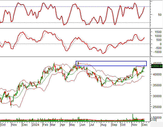 Bên cạnh đó, giá cổ phiếu bật tăng sau khi test thành công đường Middle của Bollinger Bands trong bối cảnh chỉ báo MACD đang không ngừng mở rộng khoảng cách với đường Signal sau khi cho tín hiệu mua trước đó càng củng cố thêm sức mạnh cho xu hướng tăng ngắn hạn của cổ phiếu.