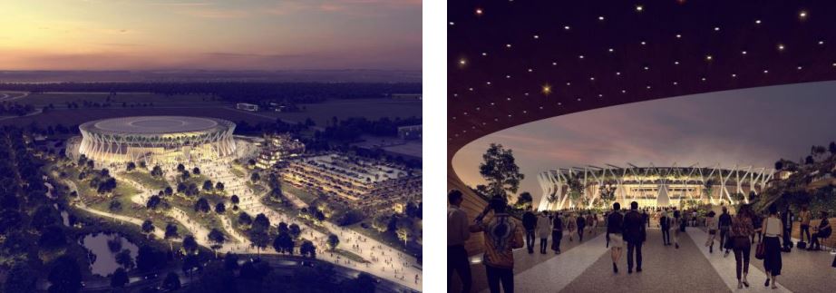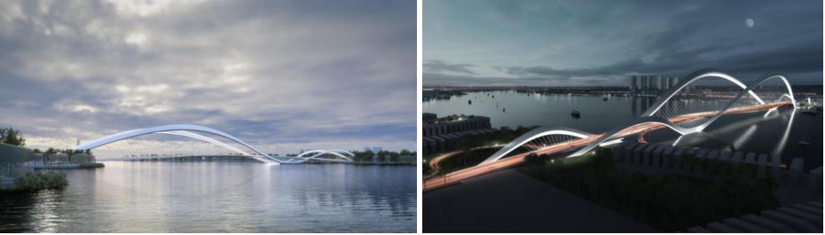 Minh họa sân vận động, cầu vượt mặt nước trung tâm