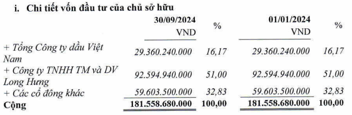 Tính đến ngày 30/09/2024, Công ty Long Hưng đang là công ty mẹ của CMV sở hữu 51%, do ông Quỳnh đại diện sở hữu. Trong khi đó, ông Quỳnh không nắm giữ cổ phiếu CMV nào. Một cổ đông lớn khác là Tổng Công ty Dầu Việt Nam - CTCP (UPCoM: OIL) sở hữu hơn 2.9 triệu cp, chiếm tỷ lệ 16.17% tại CMV.