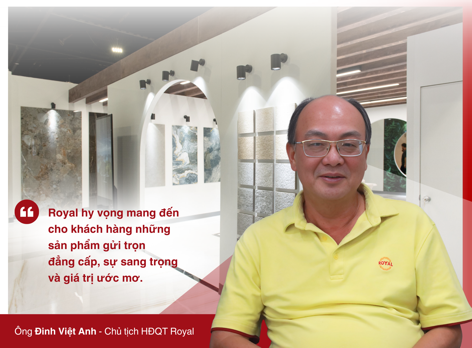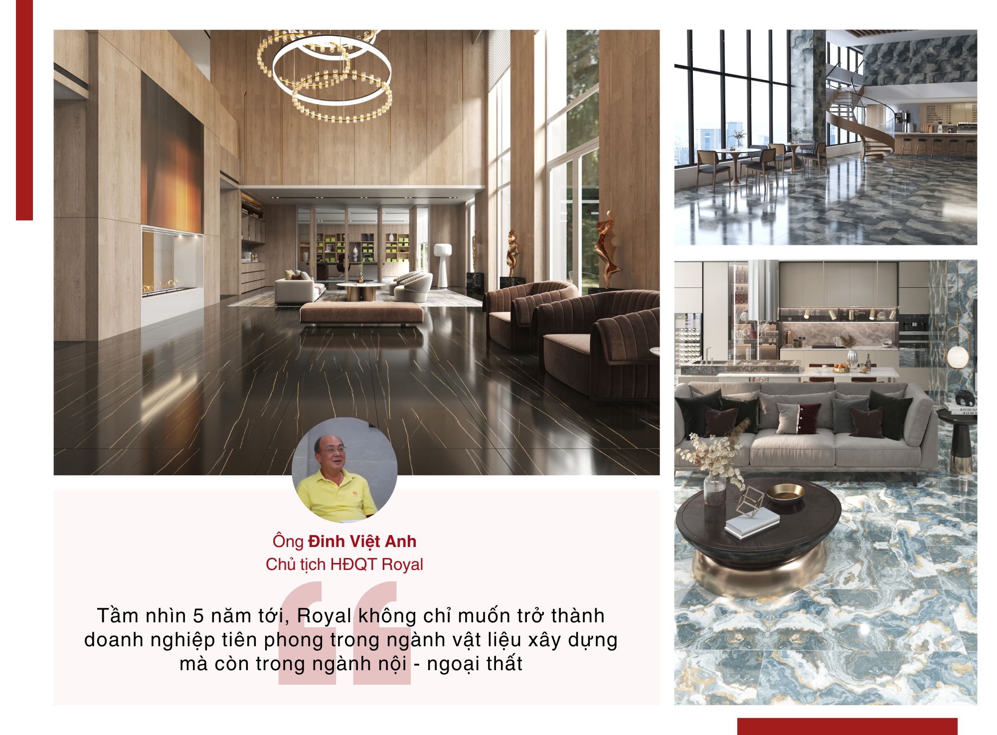 - Như tôi đã chia sẻ, Royal không chỉ giới hạn trong ngành vật liệu xây dựng hay ngành ốp lát. Chúng tôi phải thay đổi để phát triển. Royal sẽ thâm nhập vào một thị trường rộng lớn hơn, chưa được khai thác nhiều, đó là ngành nội - ngoại thất.