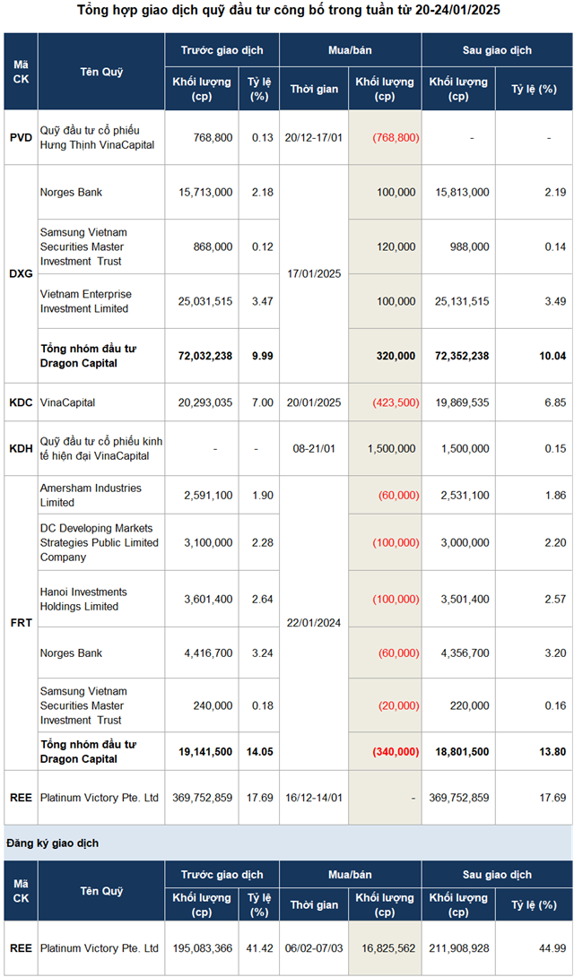 Trong tuần giao dịch cuối cùng của năm Giáp Thìn (20-24/01/2025), chỉ có một quỹ đầu tư báo cáo kết quả bán cổ phiếu với khối lượng khiêm tốn.