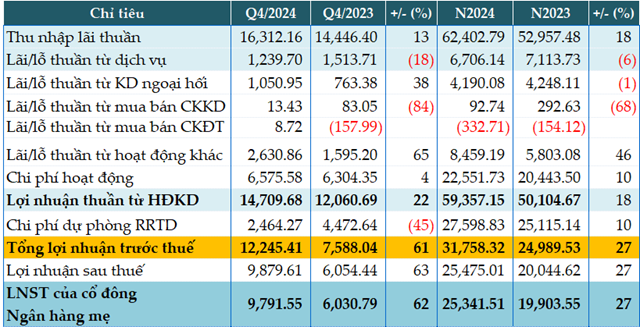 Kết quả kinh doanh quý 4 và năm 2024 của CTG. Đvt: Tỷ đồng