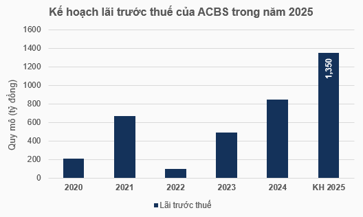 Kế hoạch được ACBS đưa ra cũng đề cập đến chỉ tiêu lãi trước thuế ước đạt 1.35 ngàn tỷ đồng, tăng trên 60% so với con số thực hiện năm 2024.