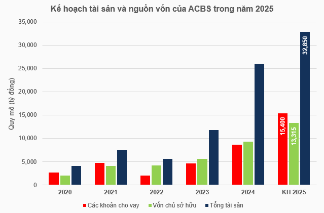 Quy mô tổng tài sản kế hoạch tăng mạnh lên gần 32.9 ngàn tỷ đồng tại thời điểm ngày 31/12/2025 của ACBS được thúc đẩy mạnh mẽ thông qua mục tiêu giá trị cho vay giao dịch ký quỹ đạt 15.4 ngàn tỷ đồng, tăng trên 75% so với thời điểm ngày 31/12/2024. Kế hoạch được hỗ trợ lớn bởi nguồn lực từ vốn chủ với mục tiêu đạt hơn 13.3 ngàn tỷ đồng, tăng trên 40%. Tất cả đều là các cột mốc mới trong lịch sử hoạt động của ACBS.