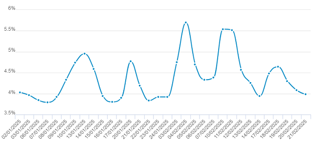 Mặc dù tiếp tục duy trì trạng thái hút ròng, thanh khoản hệ thống không gặp nhiều áp lực trong thời điểm cuối tuần (21/02) với lãi suất liên ngân hàng kỳ hạn qua đêm giảm xuống dưới ngưỡng 4%, còn 3.98%/năm.