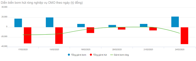 Diễn biến bơm hút ròng nghiệp vụ OMO trong tuần qua (17-24/02/2025). Đvt: Tỷ đồng