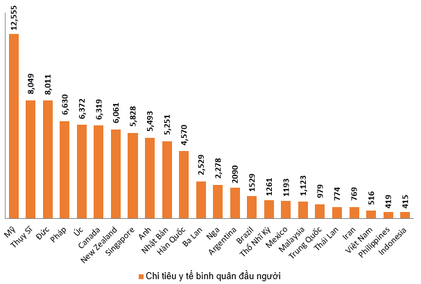 Chi tiêu y tế bình quân đầu người của các nước trên thế giới