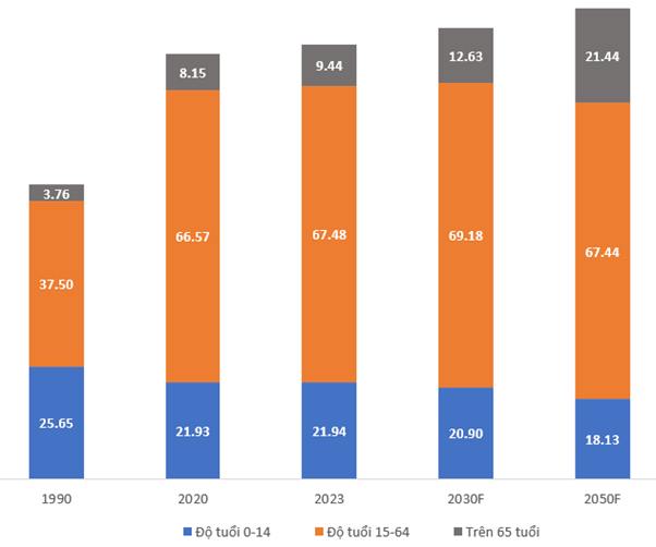 Theo dự báo từ Ủy ban Kinh tế - Xã hội châu Á và Thái Bình Dương (ESCAP), số lượng người trên 65 tuổi ở Việt Nam sẽ đạt mức 21.44 triệu người, chiếm tỷ lệ 20% dân số vào năm 2050. Trong năm 2023, con số này chỉ mới ở mức 9.44 triệu người và chiếm 9.55% dân số Việt Nam.