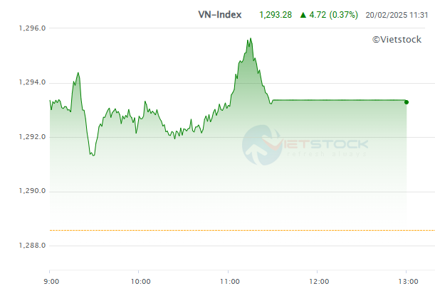 Sau 25 phút đầu ngày, VN-Index tăng thêm 3.98 điểm, tương đương 0.31% để tiến lên mốc 1,292.54. Bên cạnh đó, HNX-Index tăng 0.84 điểm lên 238.63 và UPCoM-Index tăng 0.52 điểm lên 99.86. Các diễn biến này đang đi ngược với nhiều thị trường lớn của châu Á.