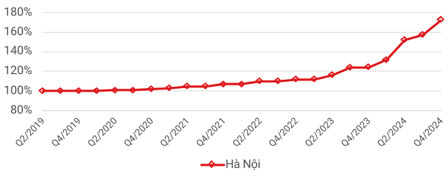Sự chênh lệch đáng kể giữa thu nhập trung bình thực tế và giá nhà, khiến việc sở hữu nhà ở tại Hà Nội hiện nay trở thành thách thức và điều không thể đối với đại đa số hộ gia đình có thu nhập ở mức trung bình thậm chí là khá, VARS nhận định.