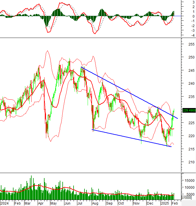 Trong phiên giao dịch ngày 07/02/2025, HNX-Index tăng điểm nối tiếp chuỗi tăng điểm 6 phiên liên tiếp trước đó cùng khối lượng giao dịch vượt mức trung bình 20 ngày cho thấy tâm lý lạc quan của nhà đầu tư đang hiện hữu.