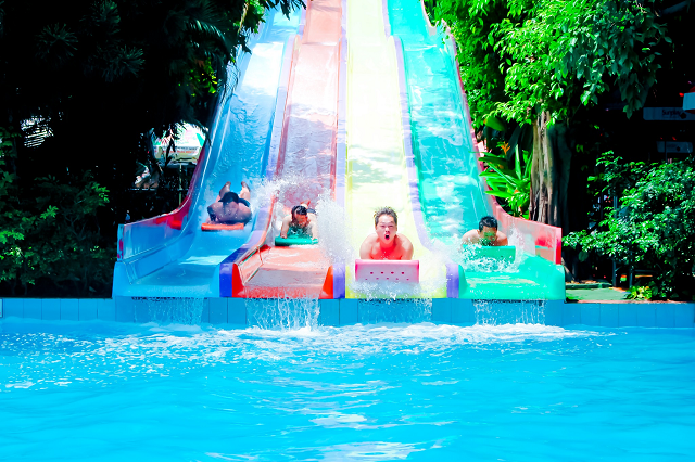 Trò chơi máng trượt ở công viên nước Đầm Sen (quận 11, TPHCM). Ảnh: DSN