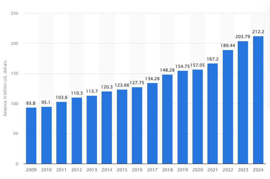 Tổng doanh thu trên toàn cầu của nhóm Big4 kiểm toán từ năm 2009 - 2024