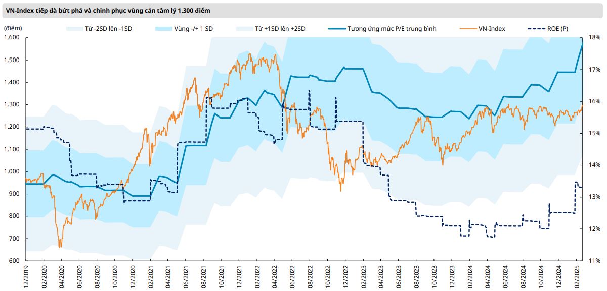 VN-Index dự kiến sẽ tiếp tục tăng trưởng và hướng về mốc 1,330 điểm trong bối cảnh chịu ảnh hưởng bởi các tin tức trái chiều đến từ thị trường quốc tế xoay quanh thương chiến. Tuy nhiên, áp lực chốt lời đến từ nhóm ngân hàng sẽ hình thành các nhịp điều chỉnh trong ngắn hạn nhằm tạo ra vùng cân bằng mới của VN-Index tại các vùng đỉnh cũ đặc biệt trong bối cảnh VN-Index vẫn đang giao dịch tại vùng kháng cự 1,300 - 1,330 điểm hình thành từ năm 2022. Vùng hỗ trợ mới của chỉ số sàn HOSE dự kiến sẽ hình thành quanh vùng 1,280 điểm.