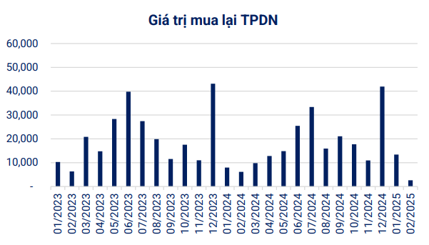 Tháng 2/2025, thị trường trái phiếu chứng kiến sự vắng bóng của các doanh nghiệp phát hành mới. Trong khi đó, lượng mua lại trước hạn cũng chỉ bằng 42% so với cùng kỳ.