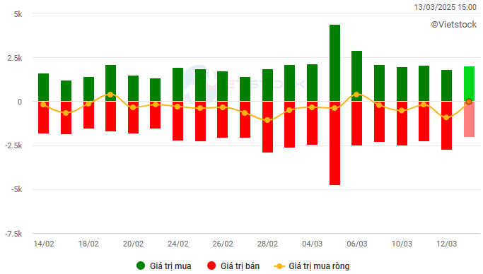 Biến động của dòng tiền từ khối ngoại: Khối ngoại tiếp tục bán ròng trong phiên giao dịch ngày 13/03/2025. Nếu nhà đầu tư nước ngoài duy trì hành động này trong những phiên tới thì tình hình sẽ càng bi quan hơn.