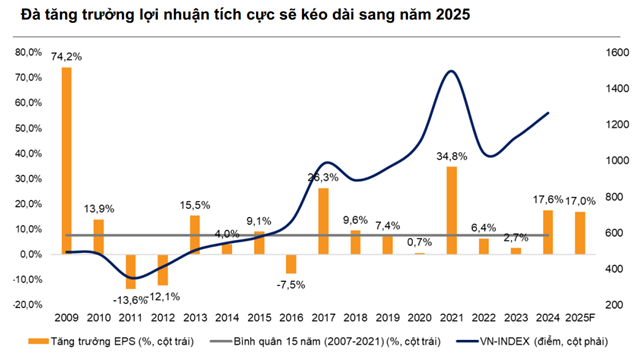 Trong năm 2025, VNDIRECT Research tin rằng, tăng trưởng lợi nhuận doanh nghiệp sẽ trở thành trọng tâm chính khi xây dựng danh mục đầu tư.
