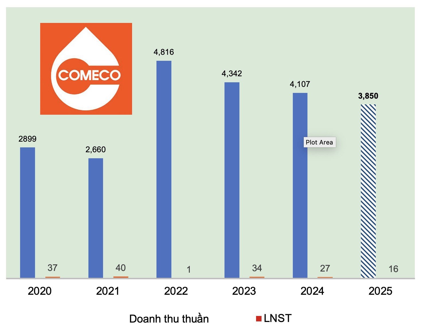 Giống như tài liệu công bố trước đó, Comeco đặt mục tiêu doanh thu 3.85 ngàn tỷ đồng cho năm 2025, giảm 7% so với thực hiện 2024. Lãi sau thuế ước đạt 16 tỷ đồng, giảm gần 41% so với cùng kỳ.