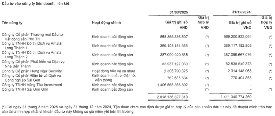 Trái với động thái thoái vốn tại các công ty con, NVL rót hơn 1.4 ngàn tỷ đồng vào Công ty TNHH Vũng Tàu Investment trong quý 1 dưới dạng đầu tư vào công ty liên doanh, liên kết (đầu năm không ghi nhận khoản đầu tư này).
