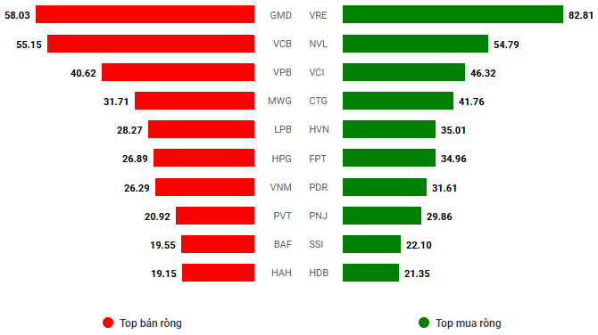 Giá trị giao dịch ròng theo mã cổ phiếu. Đvt: Tỷ đồng