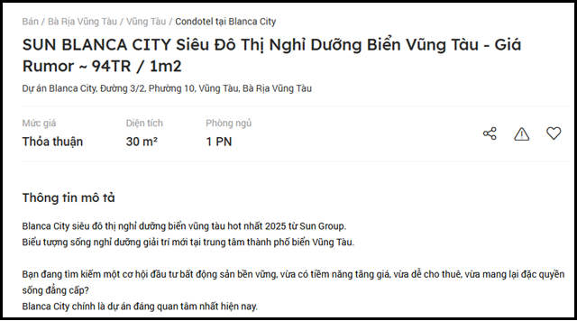 Một số tin rao dự án Blanca City. Nguồn: batdongsan.com.vn