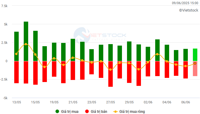 Biến động của dòng tiền từ khối ngoại: Khối ngoại tiếp tục bán ròng trong phiên giao dịch ngày 09/06/2025. Nếu nhà đầu tư nước ngoài duy trì hành động này trong những phiên tới thì tình hình sẽ bi quan hơn.
