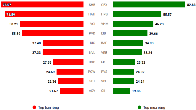 Giá trị giao dịch ròng theo mã cổ phiếu. Đvt: Tỷ đồng
