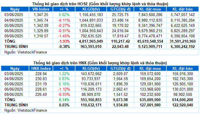 I. PHÂN TÍCH THỊ TRƯỜNG CHỨNG KHOÁN CƠ SỞ NGÀY 09/06/2025