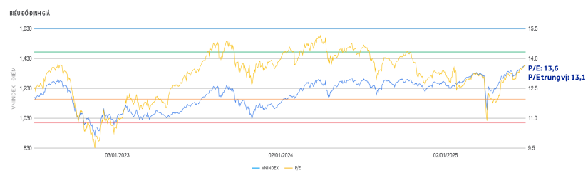 Cho giai đoạn 6 tháng cuối năm 2025, Phòng phân tích và Chiến lược thị trường Chứng khoán ACB (ACBS Research) định giá VN-Index trong khoảng 1,350 - 1,500, thanh khoản tăng 20% so với năm 2024.