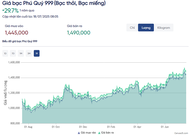 Giá bạc Phú Quý trong 1 năm qua