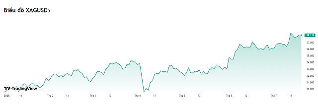 Chẳng hạn hồi đầu tháng 4 vừa qua, giá bạc giảm mạnh hơn 10% chỉ trong chưa đầy 1 tuần, giảm mạnh hơn vàng (chỉ giảm 5% trong cùng kỳ) kể từ khi Tổng thống Trump tuyên bố các quyết định thuế quan khiến nhà đầu tư lo sợ. Tuy nhiên, giá đã phục hồi và vượt qua đỉnh 13 năm khi thuế quan được tạm hoãn và tín hiệu tích cực từ cuộc đàm phán Mỹ - Trung. Giá bạc thế giới lập đỉnh ở mức 37.11 USD/ounce trong phiên 17/6, tăng 29% so với đầu năm; còn giá vàng lập đỉnh ở 3,433.88 USD/ounce trong phiên 13/6, tăng 31% so với đầu năm.