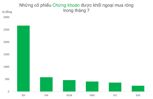 Giá trị mua ròng của các cổ phiếu chứng khoán từ đầu tháng 7/2025.