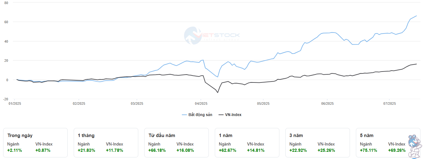 Kết quả của chỉ số ngành bất động sản so với VN-Index