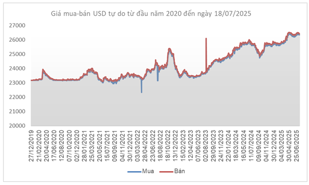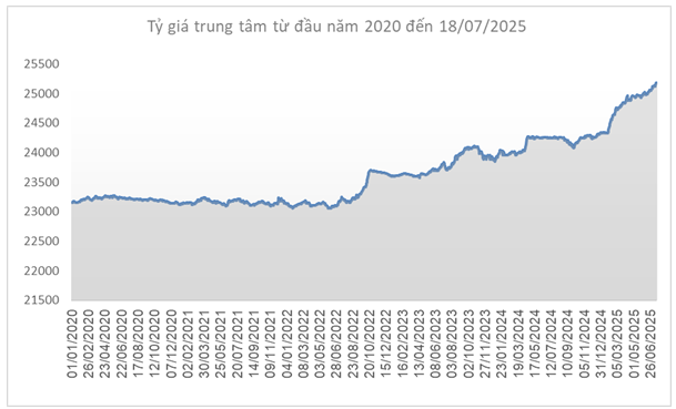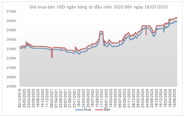 Trong tuần từ 14–18/07/2025, giá USD trên thị trường quốc tế tăng mạnh, được thúc đẩy bởi dữ liệu kinh tế lạc quan của Mỹ.