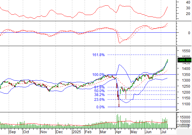 Nếu các tín hiệu kỹ thuật duy trì tích cực trong thời gian tới thì vùng giá tiềm năng (Price Target) có thể là vùng 1,510-1,515 điểm, tương đương mức Fibonacci Retreacement 161.8%.