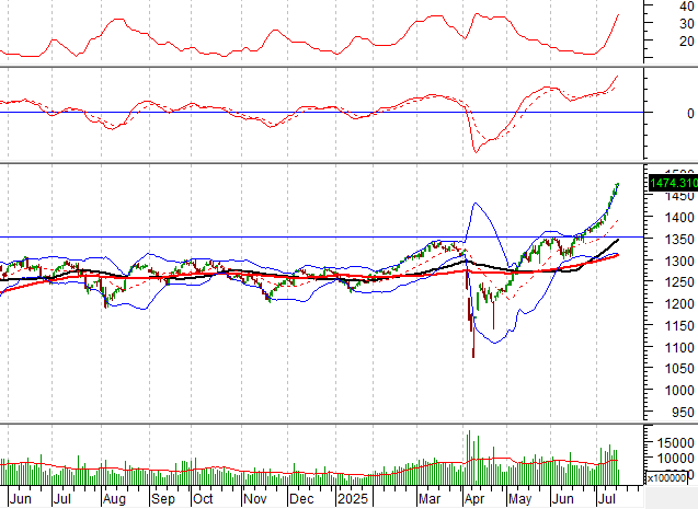 Tuy nhiên, chỉ số tiếp tục bám sát dải trên (Upper Band) của Bollinger Bands trong bối cảnh chỉ báo ADX tiếp tục duy trì trong vùng xu hướng mạnh (ADX>25) cho thấy khả năng tăng trưởng vẫn còn.