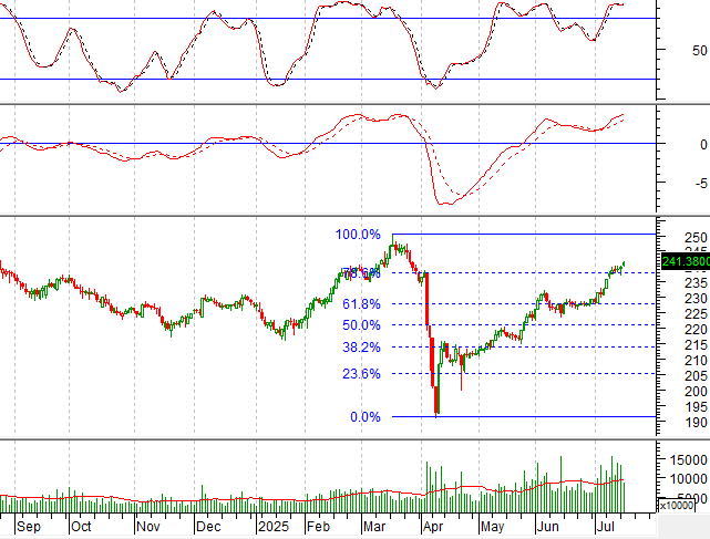 Thêm vào đó,chỉ số đã kiểm tra thành công ngưỡng Fibonacci Retracement 78.6% (tương đương vùng 236-238) trong bối cảnh đường MACD tiếp tục đi lên sau khi cho tín hiệu mua. Điều này cho thấy đà phục hồi của chỉ số tiếp tục được củng cố trong ngắn hạn.